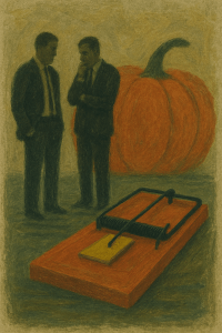 “I don’t see how that’s our problem to be honest with you, Bert. The ad never mentioned any guarantees. You’re worrying over nothing.” Luke took his feet off the desk, planting them on the boardroom floor to lean forward, plucking another cube of cheese from a serving plate. “They are pumpkins after all.”