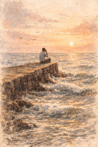 There was a pause between them as Liam waited to ensure that that was all the sea had to say. As he did, the tide lapped over the stones of the breakwater below him kicking up spray. A few tiny droplets landed on his face. He scoffed and a shuffled around a bit so his uncomfortable shoes and trousers wouldn’t get splashed. This, along with the rest of reality, served only to further calcify his annoyance. Liam couldn’t feel the warmth of the sun on his skin or the gentle breeze that had travelled hundreds of miles to caress his face. He was colourblind to the million variations of blue and green and silver that danced on the sea’s surface for him. He couldn’t taste the sweetness of late summer on the air. Despite coming here at least twice a week he was numb to it all. He was too busy bubbling, like a resentment-flavoured fizzy drink left to roll around a footwell.